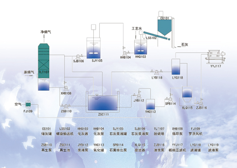 濕式石灰(石灰石)—石膏法是當(dāng)今世界技術(shù)成熟、實(shí)際應(yīng)用多、運(yùn)行穩(wěn)定且運(yùn)行費(fèi)用低的脫硫工藝。濕式鈣法的優(yōu)點(diǎn)是效率和脫硫劑利用率高。該技術(shù)利用脫硫液(亞硫酸鈣懸浮液)在塔內(nèi)與煙氣中SO2反應(yīng)生成溶解度很大的亞硫酸氫鈣(因而不結(jié)逅)。反應(yīng)后的脫硫液(主要是亞硫酸氫鈣)在脫硫循環(huán)池內(nèi)用石灰漿再生出亞硫酸鈣供循環(huán)脫硫使用,并排除部分亞硫酸鈣懸浮液,經(jīng)氧化,脫水后生成鈣硫石膏。進(jìn)行回收利用。這是一種類似雙堿法、新型的全鈣基間接石灰—石膏脫硫法,主要使用的脫硫劑是石灰。