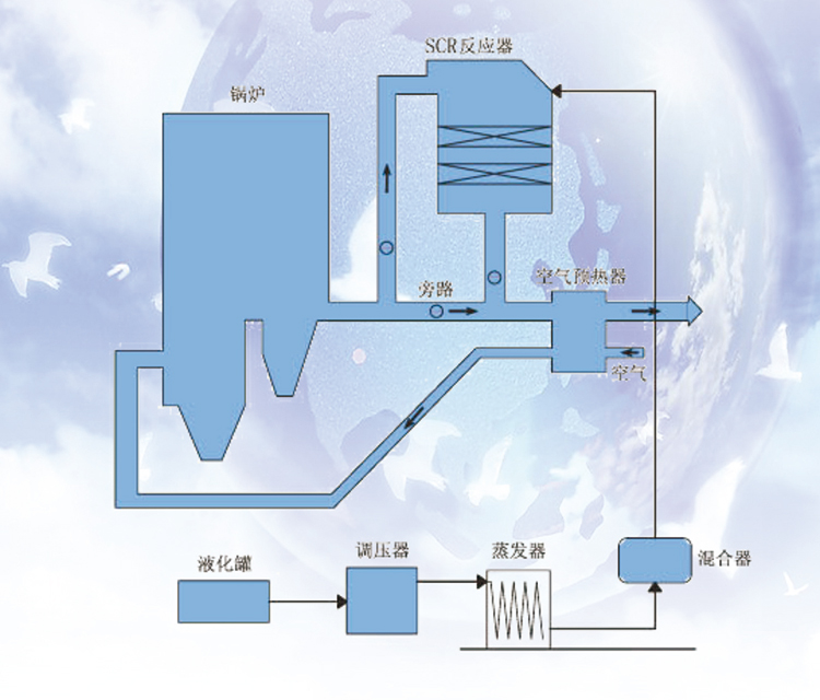 煙氣脫硝裝置分為選擇性催化還原(SCR)脫硝、選擇性非催化還原(SNCR)脫硝和同步脫硫脫硝等類型。目前絕大部分都用SCR法,SNCR法僅占約5%,少數(shù)燃煤電廠采用活性焦同步脫硝法進行煙氣脫硝。選擇性催化還原工藝的系統(tǒng)由催化劑反應器、催化劑和氨儲存和噴射系統(tǒng)所組成。催化劑反應器在鍋爐煙道中的布置有兩種可行方案: